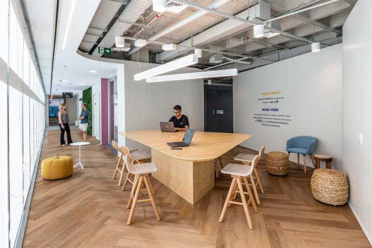 設計師在設計時將重點集中在曲線造型上面,在所有不同區域之間進行過度的串聯,引導人們穿過空間,甚至能夠讓顧客帶著一顆好奇心,去探索在曲線造型后的空間。明亮色彩的木材、地板以及工作站內深藍的色板形成對比,創造出生動而極富靈感的工作場所。也可以方便與客戶交談旅行方式時有一個安靜的辦公場所,讓顧客靜靜地挑選。